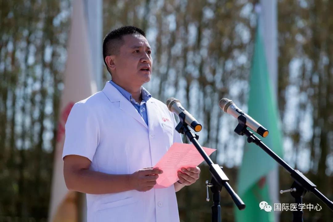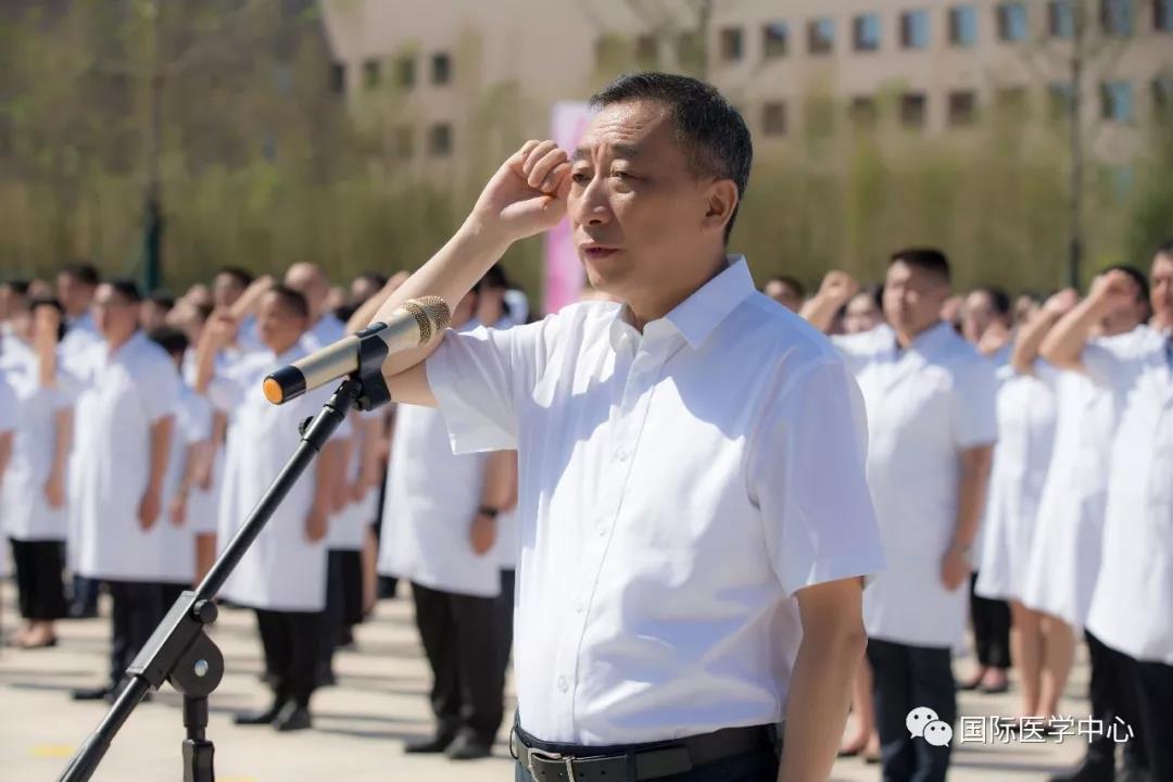儀式開始,王志峰總經(jīng)理發(fā)表了熱情洋溢的致辭,歡迎來自五湖四海的各位醫(yī)療及醫(yī)療保障工作者們,并祝賀大家成為西安國際醫(yī)學中心的開拓者、創(chuàng)業(yè)者。他表示,經(jīng)過近一年的密集籌備、人員引進,我中心首批員工到崗,其中學科帶頭人和骨干來自全國知名三甲醫(yī)院,可謂人才濟濟,精英薈萃,具備揚帆遠航的實力。全體員工是西安國際醫(yī)學中心建設(shè)的基石、發(fā)展的核心動力。合格的國際醫(yī)學人,應(yīng)該是以至善之心博愛天下,以服務(wù)社會積微致遠。秉承讓“患者有尊嚴的生活,醫(yī)者有尊嚴的工作”的價值觀,珍惜機遇,牢記誓言,不忘初心,砥礪前行。匯聚人類生命科學智慧,同步國際頂尖診療水平。為了一個共同的目標凝聚一起,共同“佑護無法衡量的價值”!