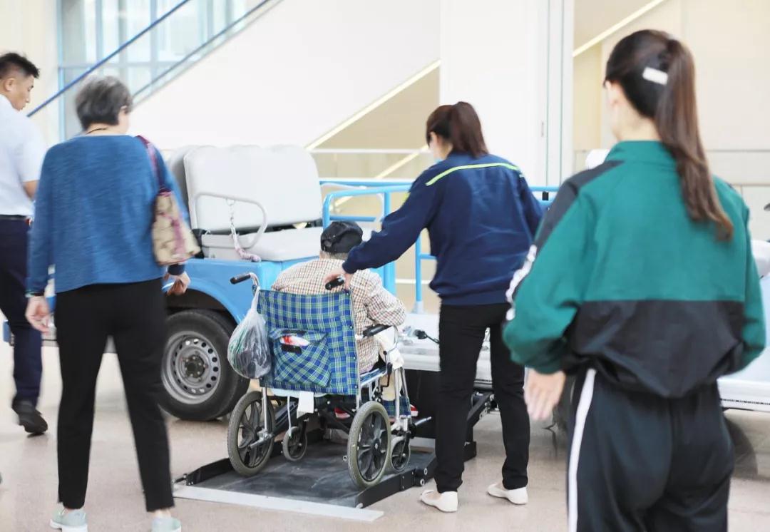 義診現(xiàn)場(chǎng)有位96歲的老人,因下肢水腫在家屬陪同下來(lái)院咨詢(xún),心臟內(nèi)科李艷副主任醫(yī)師接待患者并悉心解答問(wèn)題。因患者乘坐輪椅行動(dòng)不便,我院為其提供了“招手停”電瓶車(chē)服務(wù),電瓶車(chē)的升降臺(tái)為患者上下車(chē)提供很大便利。家屬表示“很貼心,從來(lái)沒(méi)有在醫(yī)院見(jiàn)過(guò)這樣的服務(wù)!”