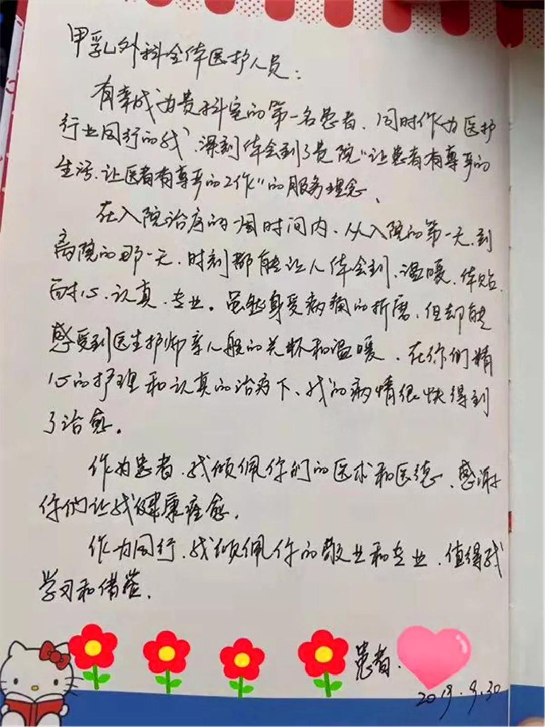 10月1日下午,甲乳外科第一位患者康復(fù)出院了!甲乳外科劉曉敏主任及科室醫(yī)護(hù)人員在患者住院期間,依靠專業(yè)的治療及精心的護(hù)理,讓患者感受到了親人般的關(guān)懷和溫暖,病人很快得到康復(fù)出院。