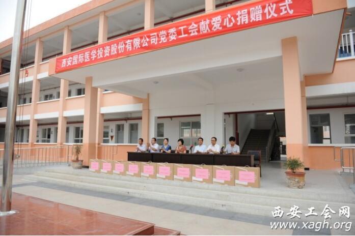 六一前夕,由西安市財(cái)貿(mào)工會(huì)、西安市教科文衛(wèi)工會(huì)和西安國(guó)際醫(yī)學(xué)投資股份有限公司聯(lián)合發(fā)起的“真情牽手、愛(ài)心助學(xué)”捐贈(zèng)活動(dòng)在戶縣蔣村鎮(zhèn)甘西小學(xué)進(jìn)行。