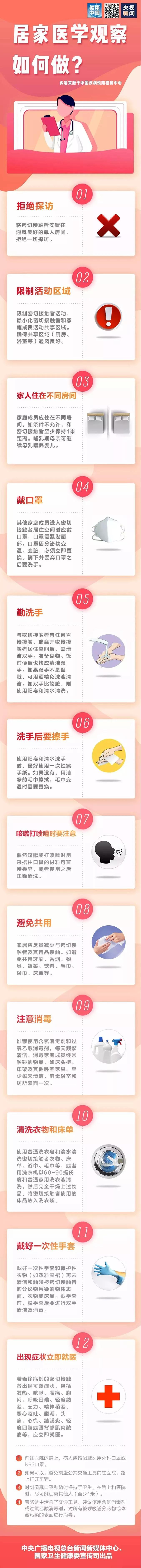 春節(jié)假期即將畫(huà)上句號(hào),又一個(gè)交通小高峰將到來(lái)。多地發(fā)布尋人通告,急尋與確診新型冠狀病毒肺炎患者密切接觸或同乘交通工具的乘客。如果您需要在家留觀隔離14天,請(qǐng)您跟隨下圖了解“居家醫(yī)學(xué)觀察如何做”。