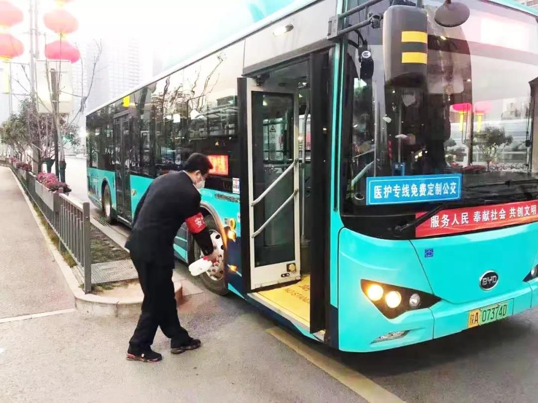 疫情期間,西安市公交五公司為醫(yī)院開通專線公交車(地鐵3號線延平門站?西安國際醫(yī)學(xué)中心醫(yī)院),為醫(yī)務(wù)人員提供免費通勤服務(wù)。公司還嚴(yán)格執(zhí)行駕駛?cè)藛T測量體溫和車輛消毒的規(guī)定,保障醫(yī)務(wù)人員用車絕對安全。