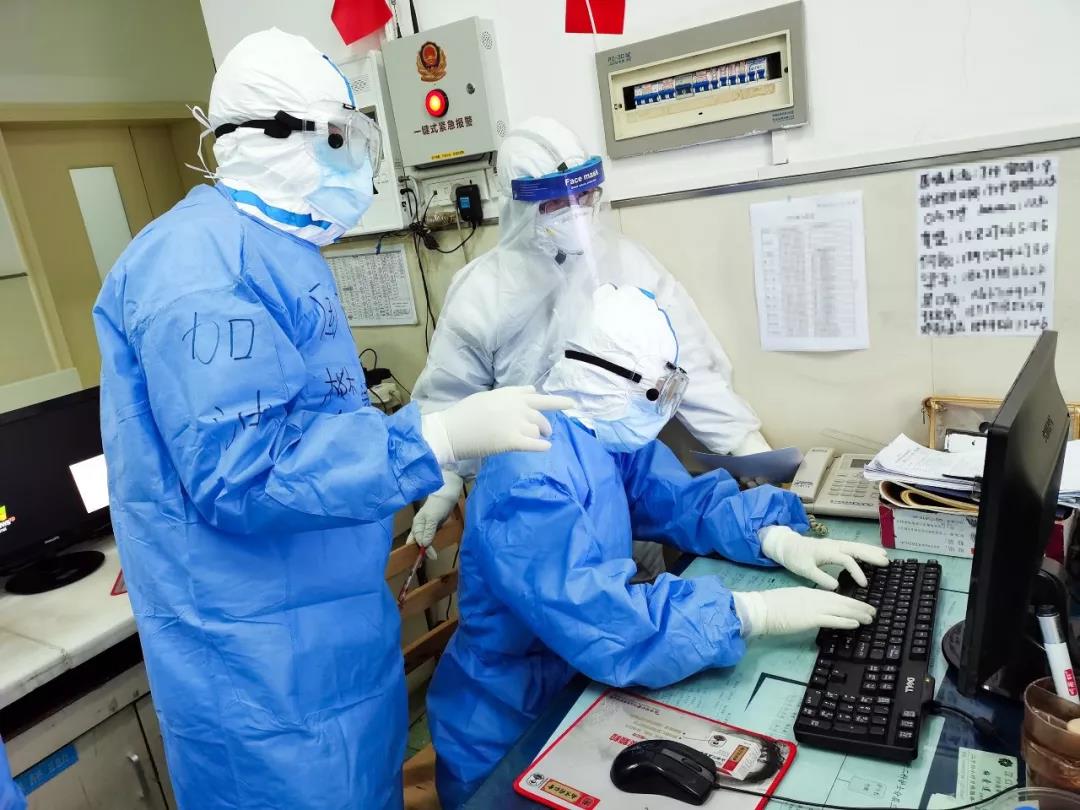緊鑼密鼓的穿好防護(hù)服,詳細(xì)交班,認(rèn)真核對(duì),我們?cè)诮恿ΑN靼矅H醫(yī)學(xué)中心醫(yī)院的白衣戰(zhàn)士們?cè)诓⒓鐟?zhàn)斗著。
