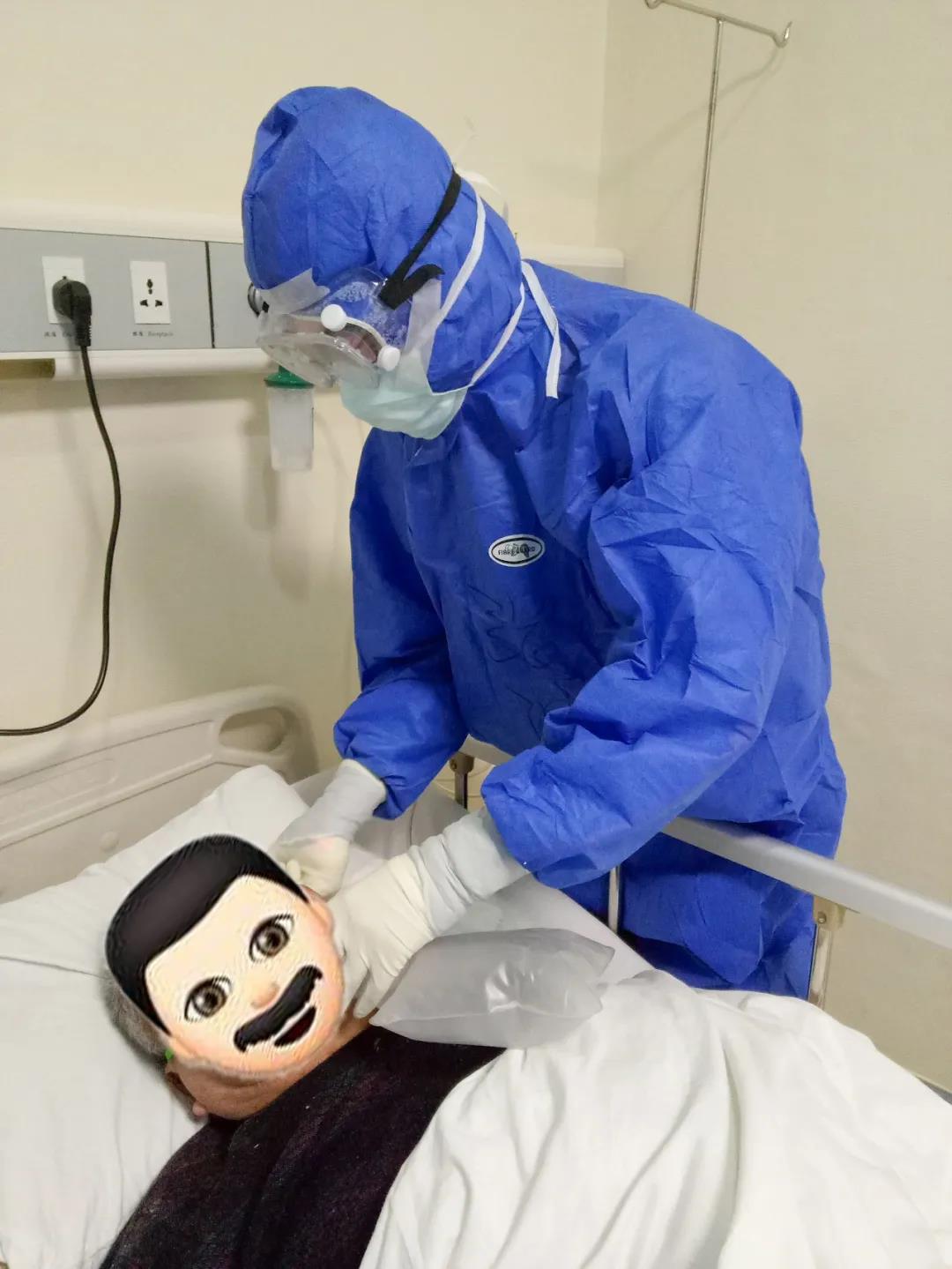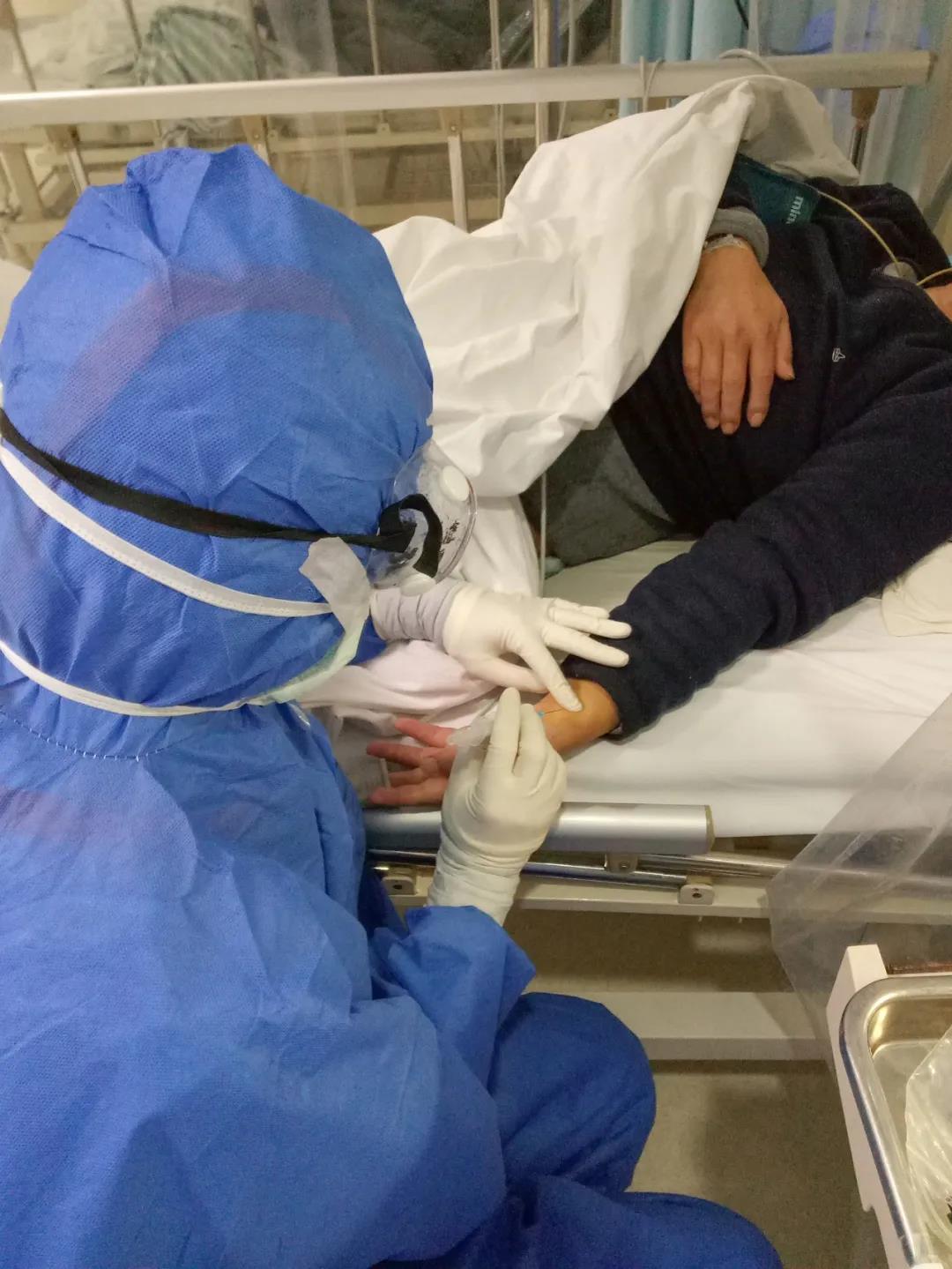 病區(qū)當天收治了36位重癥患者,雖然早有準備,但現(xiàn)實比張波想象的復雜。N95口罩和外科口罩、帽子、防護服、手套、長靴套、隔離衣、眼罩……層層防護服下,張波的視覺、聽覺、觸覺都受到影響。視線受限于起霧的護目鏡,寬大厚實的手掌戴了好幾層手套,原本動脈采血、靜脈采血、留置針穿刺、輸液以及生命體征測量等熟悉的基本治療,操作起來異常艱難。