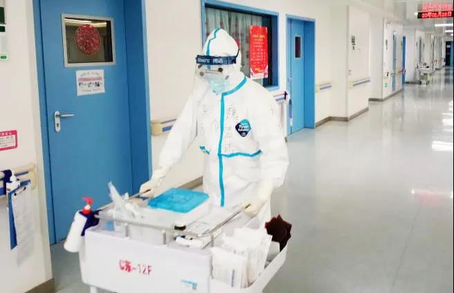 經(jīng)過40分鐘的車程、層層“武裝”后,我迅速投入工作狀態(tài):處理污染區(qū)垃圾、輸液、量體溫、抽血、協(xié)助患者服藥到口、執(zhí)行醫(yī)囑等等基礎(chǔ)操作和生活護(hù)理。身處一線的每一秒,我都在心里給自己默敲警鐘。責(zé)任所在,不容紕漏。清楚記得初上戰(zhàn)場時(shí),盡管已進(jìn)行大量嚴(yán)格培訓(xùn),我仍感到有些緊張。但說來奇怪,當(dāng)我真正接觸到這些樂觀積極的患者時(shí),一股油然而生的親切感、使命感平復(fù)了我的忐忑。