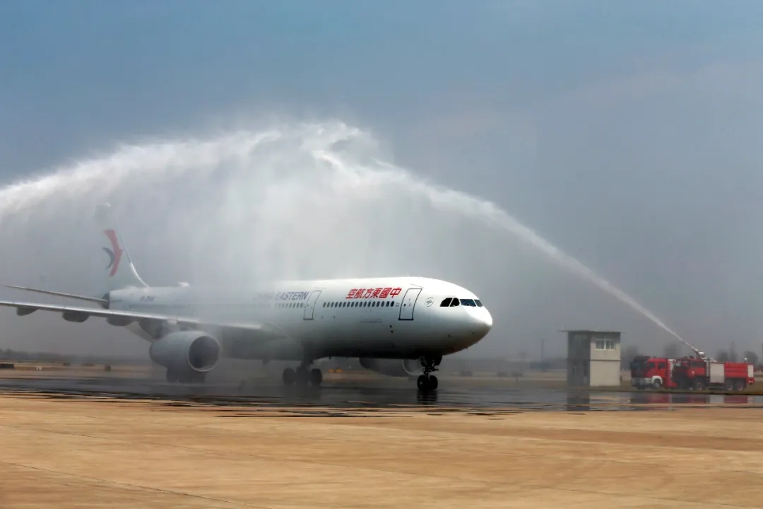 西安國際醫(yī)學中心醫(yī)院支援湖北醫(yī)療隊乘坐的飛機降落在西安咸陽機場,兩道噴薄而起的水柱形成一道亮麗的彩虹,為抗疫歸來的勇士們送上了家鄉(xiāng)人民的敬意。