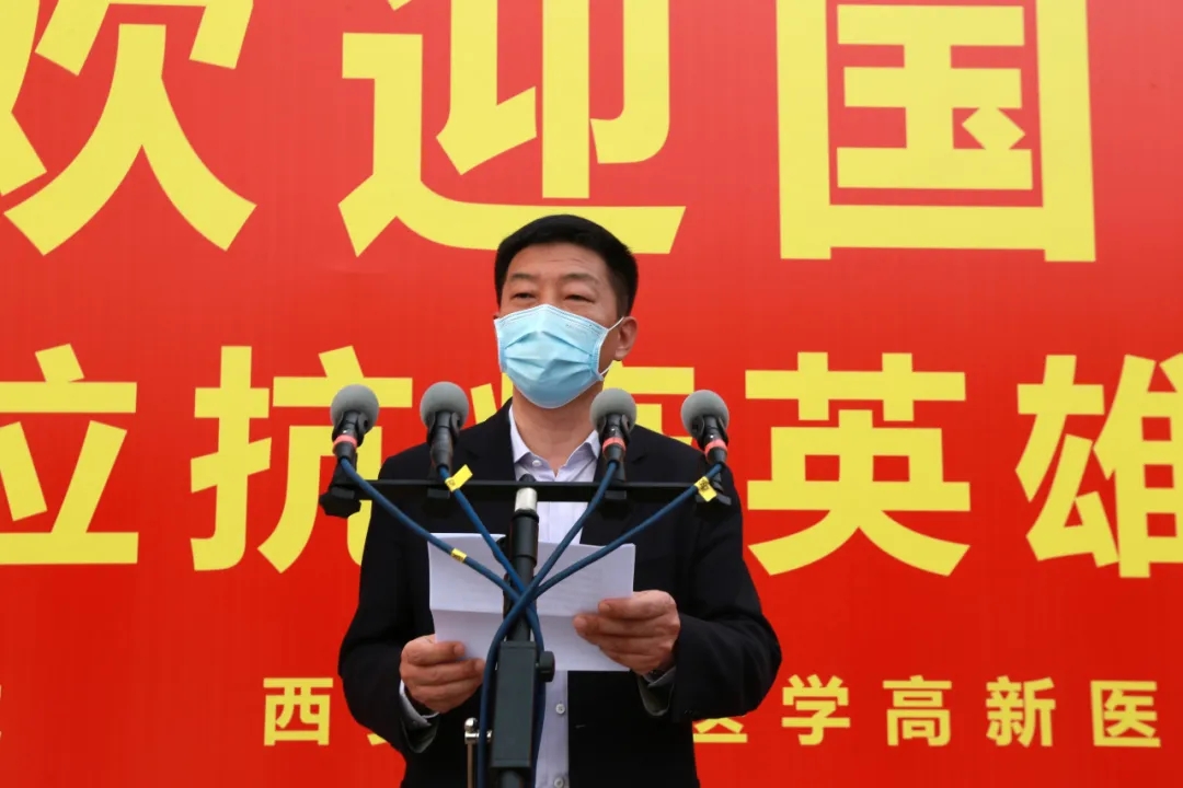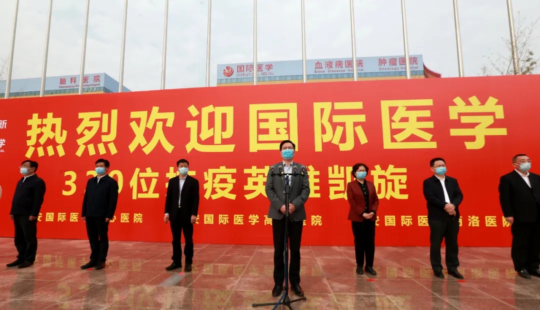 “一個都不能少,一個都不會少。迎接歸來和送大家出征時的心情不同,西安國際醫(yī)學中心醫(yī)院大家庭終于團圓了!你們是醫(yī)院的驕傲,希望你們保重身體?!蔽靼矅H醫(yī)學中心醫(yī)院院長尹強激動萬分,寄語載譽而歸的各位隊員。
