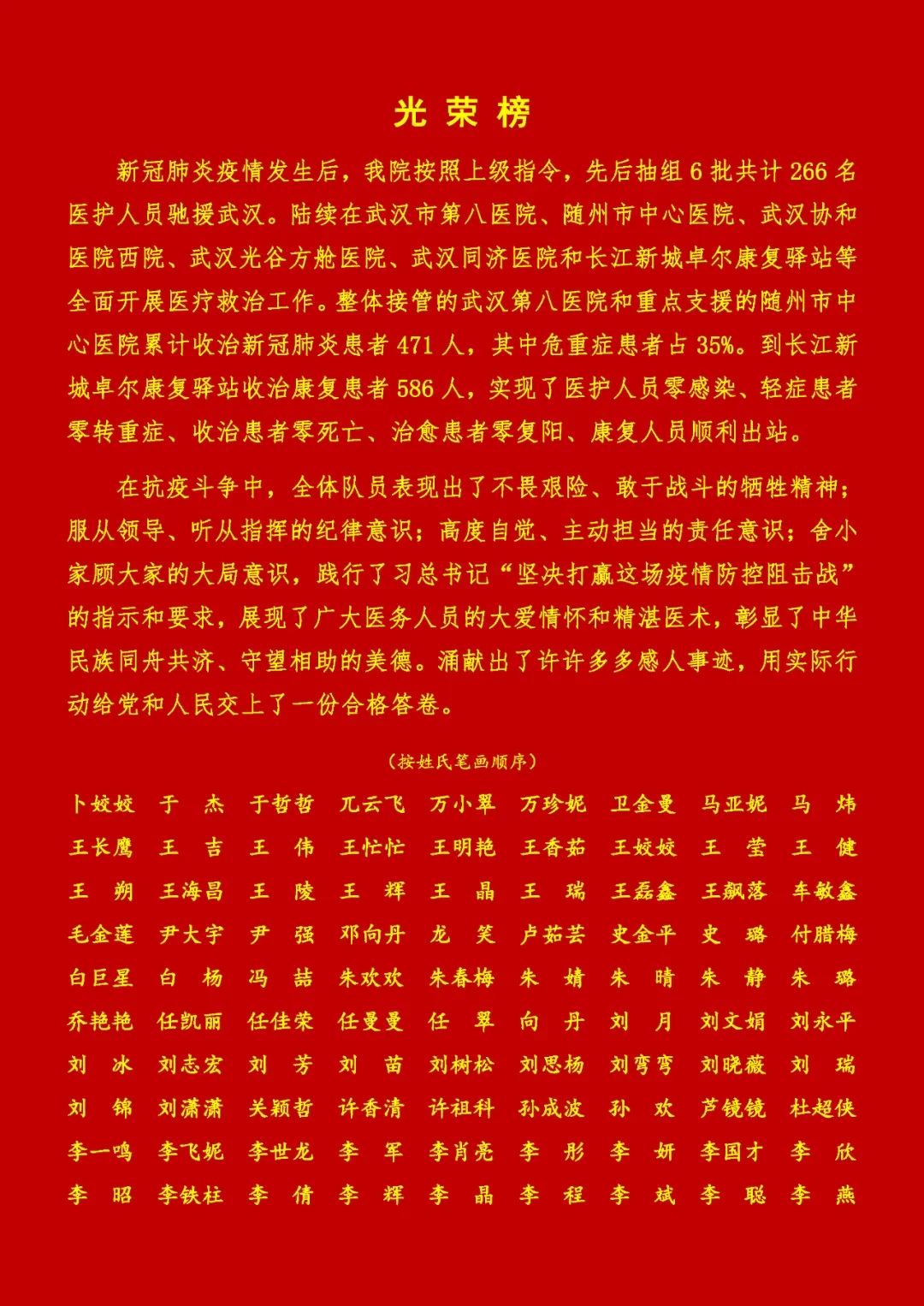 在這場沒有硝煙的戰(zhàn)疫中,醫(yī)療隊員們不負重托和希望,克服了重重困難,發(fā)揮專業(yè)優(yōu)勢,與武漢市第八醫(yī)院、隨州市中心醫(yī)院一道,開展新冠肺炎患者救治工作,負責的3個重癥和危重癥病區(qū)、6個普通病區(qū),累計收治患者471人,累計出院423人;負責的長江新城康復驛站現(xiàn)6個艙累計收治586人,累計康復461人,轉出或代管的125人。無重患,無死亡,至此,醫(yī)療隊全部返回,為陜西人民交上了滿意的答卷。