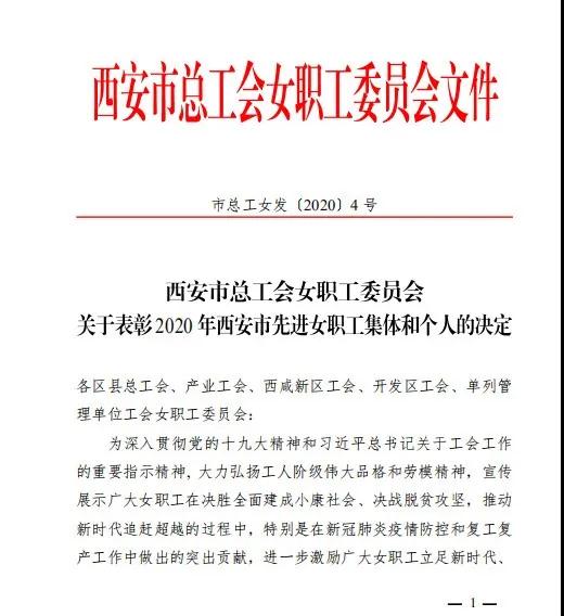 西安市總工會(huì)在《關(guān)于表彰2020年西安市先進(jìn)女職工集體和先進(jìn)個(gè)人的決定》指出,在抗擊新冠肺炎疫情的關(guān)鍵時(shí)刻,薛妍副院長(zhǎng)主動(dòng)請(qǐng)纓馳援武漢、隨州兩地。在戰(zhàn)斗中時(shí)刻以高度的責(zé)任意識(shí)和擔(dān)當(dāng)精神做好每項(xiàng)工作。在武漢第八醫(yī)院,她參與專家組工作,規(guī)劃救治重點(diǎn)及工作流程,制定診療方案,保證各項(xiàng)工作順利展開。在隨州市中心醫(yī)院,她負(fù)責(zé)醫(yī)療隊(duì)的后勤保障以及隊(duì)員們的衣食住行,被隨州市委授予“抗擊新冠肺炎疫情先進(jìn)個(gè)人”榮譽(yù)稱號(hào)。