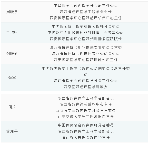 本次義診的醫(yī)護(hù)團(tuán)隊(duì)陣容不僅專(zhuān)業(yè)面廣而且水平高,僅超聲科就聚集了西安市各大醫(yī)院的超聲科主任一起深入基層為平利的女同胞們義診。他們是: