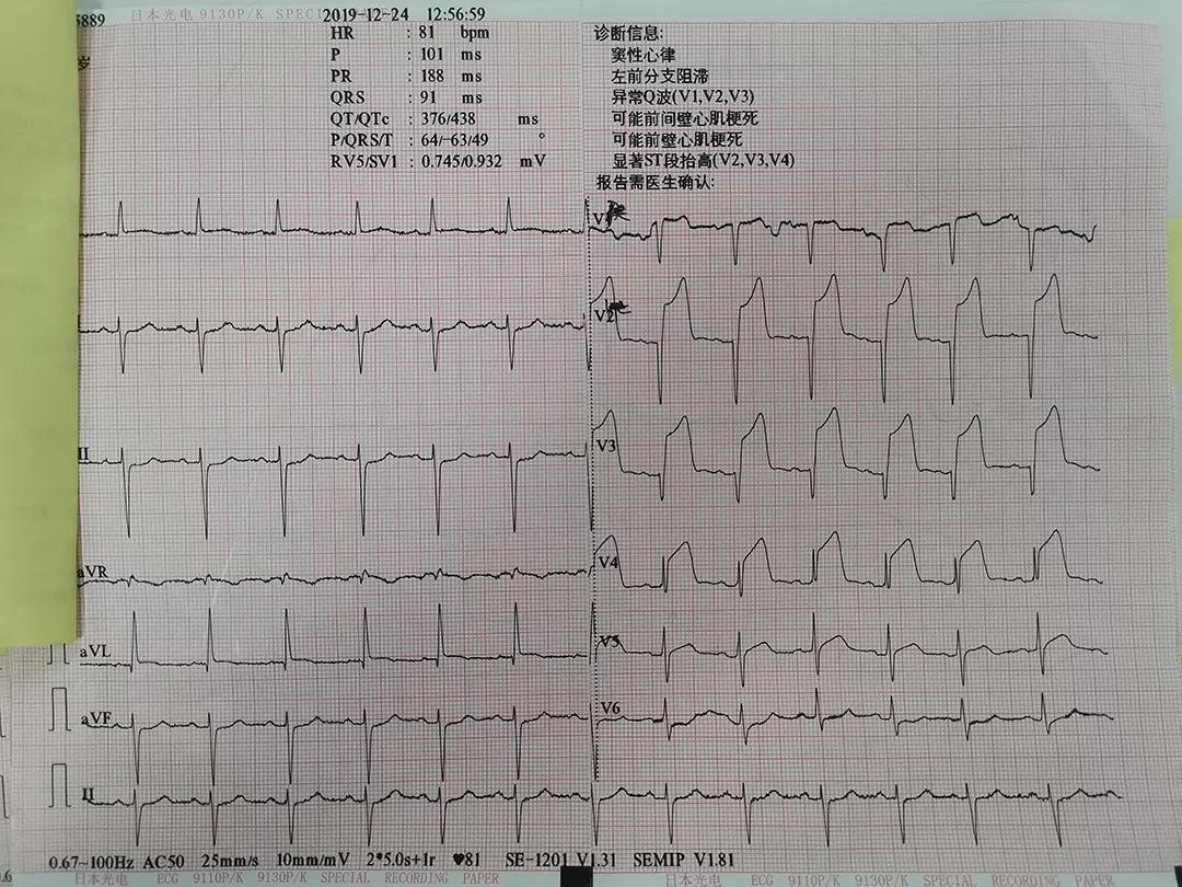 24日,今年已101歲的高齡的患者楊某,3小時(shí)前因突發(fā)胸悶胸痛、氣短、出汗,癥狀持續(xù)不緩解,被送至西安市某醫(yī)院,根據(jù)心電圖機(jī)心損標(biāo)記物的結(jié)果,明確診斷為急性前壁心肌梗死。因需急診介入治療,被緊急送往西安國(guó)際醫(yī)學(xué)中心醫(yī)院救治。心臟內(nèi)科接診后,立即啟動(dòng)綠色通道,對(duì)患者進(jìn)行相關(guān)檢查后再次明確了診斷。