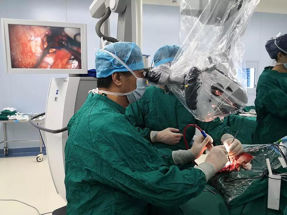 腫瘤大、位置深、腦壓高、出血多。高國棟教授沉著冷靜、克服遇到的各種困難,以嫻熟的技術(shù)逐一控制兇猛的出血全切腫瘤,手術(shù)終于轉(zhuǎn)危為安,順利取得成功。