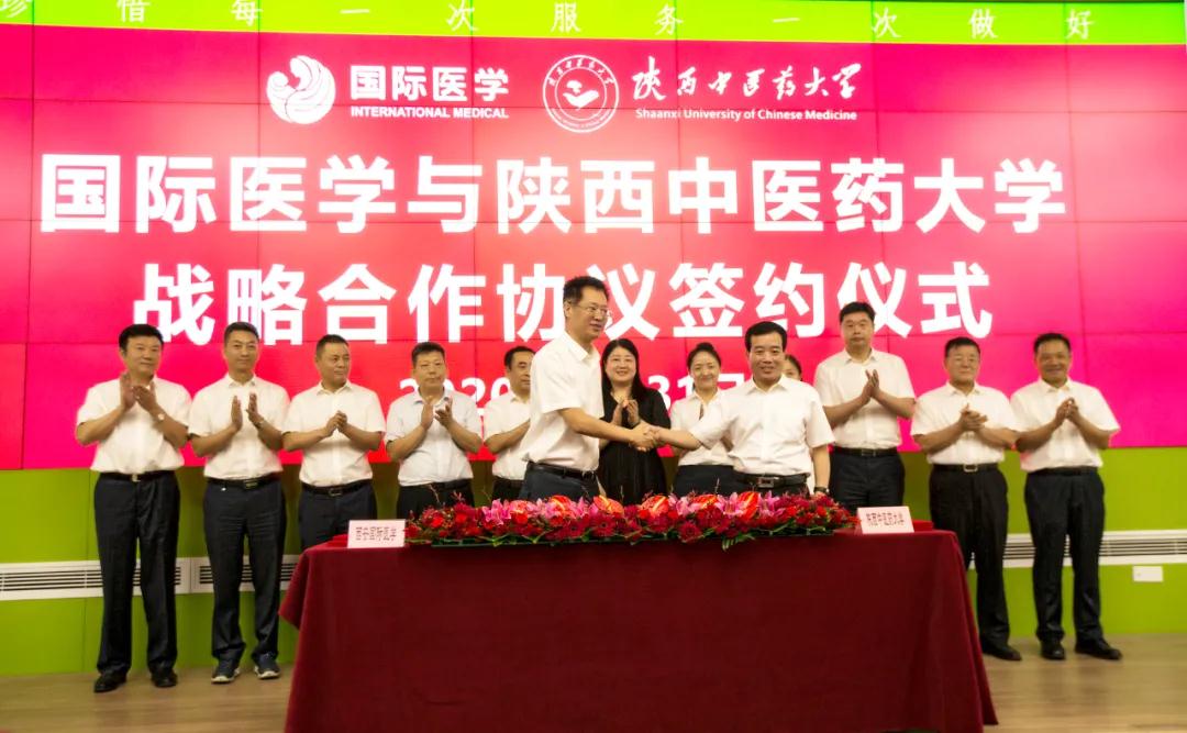 7月31日上午,西安國際醫(yī)學(xué)投資股份有限公司與陜西中醫(yī)藥大學(xué)戰(zhàn)略合作協(xié)議簽署暨附屬醫(yī)院揭牌儀式在西安國際醫(yī)學(xué)中心醫(yī)院保障樓6樓會議室舉行。陜西省中醫(yī)藥管理局副局長孔群、陜西中醫(yī)藥大學(xué)校長孫振霖、陜西中醫(yī)藥大學(xué)黨委副書記于遠(yuǎn)望、陜西中醫(yī)藥大學(xué)黨委副書記蒲濟(jì)生,國際醫(yī)學(xué)實(shí)際控制人劉建申、董事長史今、黨委書記、總裁劉瑞軒及西安國際醫(yī)學(xué)中心醫(yī)院院長尹強(qiáng)、總經(jīng)理王志峰等領(lǐng)導(dǎo)出席儀式,陜西中醫(yī)藥大學(xué)及國際醫(yī)學(xué)各醫(yī)院相關(guān)人員參加活動。