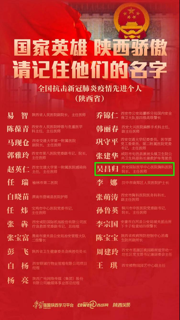 8月18日,陜西省衛(wèi)健委授予吳昌歸教授“第四屆三秦最美醫(yī)務(wù)工作者”榮譽稱號。