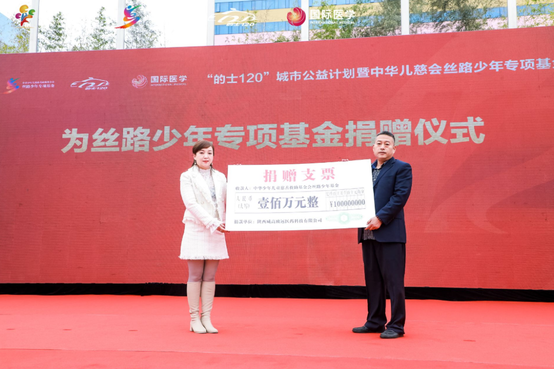 活動現(xiàn)場,中華少年兒童慈善救助基金會理事長兼秘書長王林為絲路少年專項基金進(jìn)行了授牌。陜西威高致遠(yuǎn)醫(yī)藥科技有限公司傾情捐贈100萬元善款,用于為全國境內(nèi)0-18周歲的腦癱、自閉癥、呼吸疾病、先天性心臟病、先天性小耳畸形等困境患兒提供醫(yī)療服務(wù)。