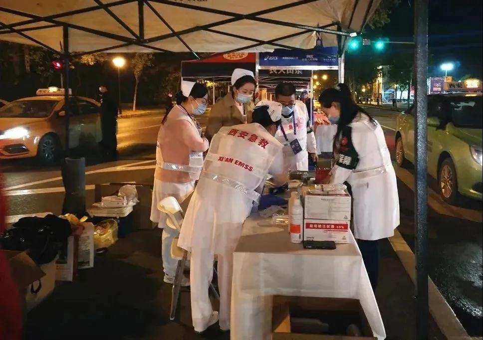 凌晨4點(diǎn),醫(yī)療保障組分成3隊(duì),分乘4輛車(chē)從醫(yī)院統(tǒng)一出發(fā)前往賽事現(xiàn)場(chǎng)。到達(dá)指定地點(diǎn)后,團(tuán)隊(duì)立刻按照前期演練分工進(jìn)行相關(guān)準(zhǔn)備工作。7點(diǎn)30分,2020西安國(guó)際馬拉松正式鳴槍開(kāi)跑,現(xiàn)場(chǎng)保障人員及時(shí)響應(yīng),積極救助受傷參賽選手,專(zhuān)業(yè)的技術(shù)和溫馨的言語(yǔ),讓受傷的的選手們感到溫暖。