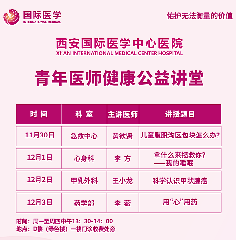 西安國(guó)際醫(yī)學(xué)中心醫(yī)院—青年醫(yī)師健康公益講堂預(yù)告