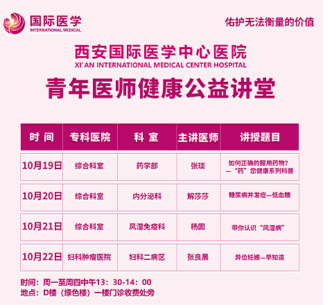 西安國際醫(yī)學(xué)中心醫(yī)院—青年醫(yī)師健康公益講堂預(yù)告