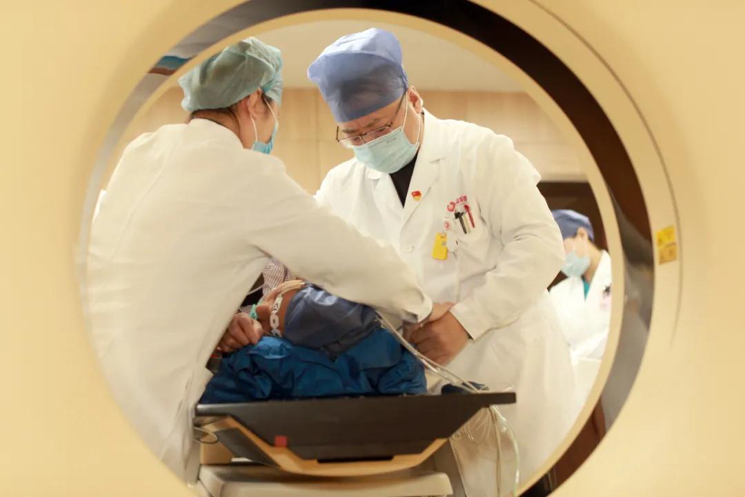 屈女士入院后肺穿刺活檢,進(jìn)一步證實(shí)了判斷?;颊呒凹覍僖笮杏曳尾≡钌漕l消融術(shù)。西安國際醫(yī)學(xué)中心醫(yī)院超聲診療中心周曉東主任與放射治療中心陸軍主任認(rèn)真研究,細(xì)心評估,為屈女士度身定制了“CT引導(dǎo)下右肺腺癌射頻消融術(shù)”治療方案,為肺癌的早診早治提供了新選擇。