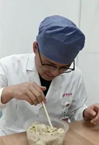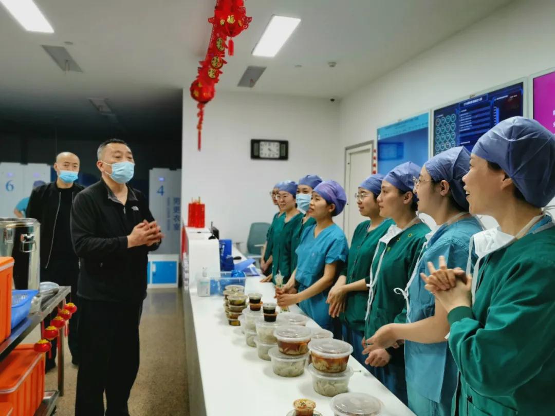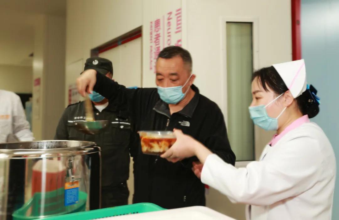 “餃子出鍋了!大家辛苦了!都來吃餃子!”剛出鍋的餃子冒著熱氣,香味彌漫在醫(yī)生辦公室、護士站。接到熱騰騰的餃子,重癥醫(yī)學(xué)科醫(yī)生張永樂迫不及待地咬了一口,牛肉大蔥餡正是他的最愛。“選擇了醫(yī)學(xué)就意味著奉獻,看著醫(yī)院的年味越來越濃,病區(qū)里的患者一個個好轉(zhuǎn),病區(qū)患者慢慢變少,我還是挺有成就感的?!睆堄罉沸χf。