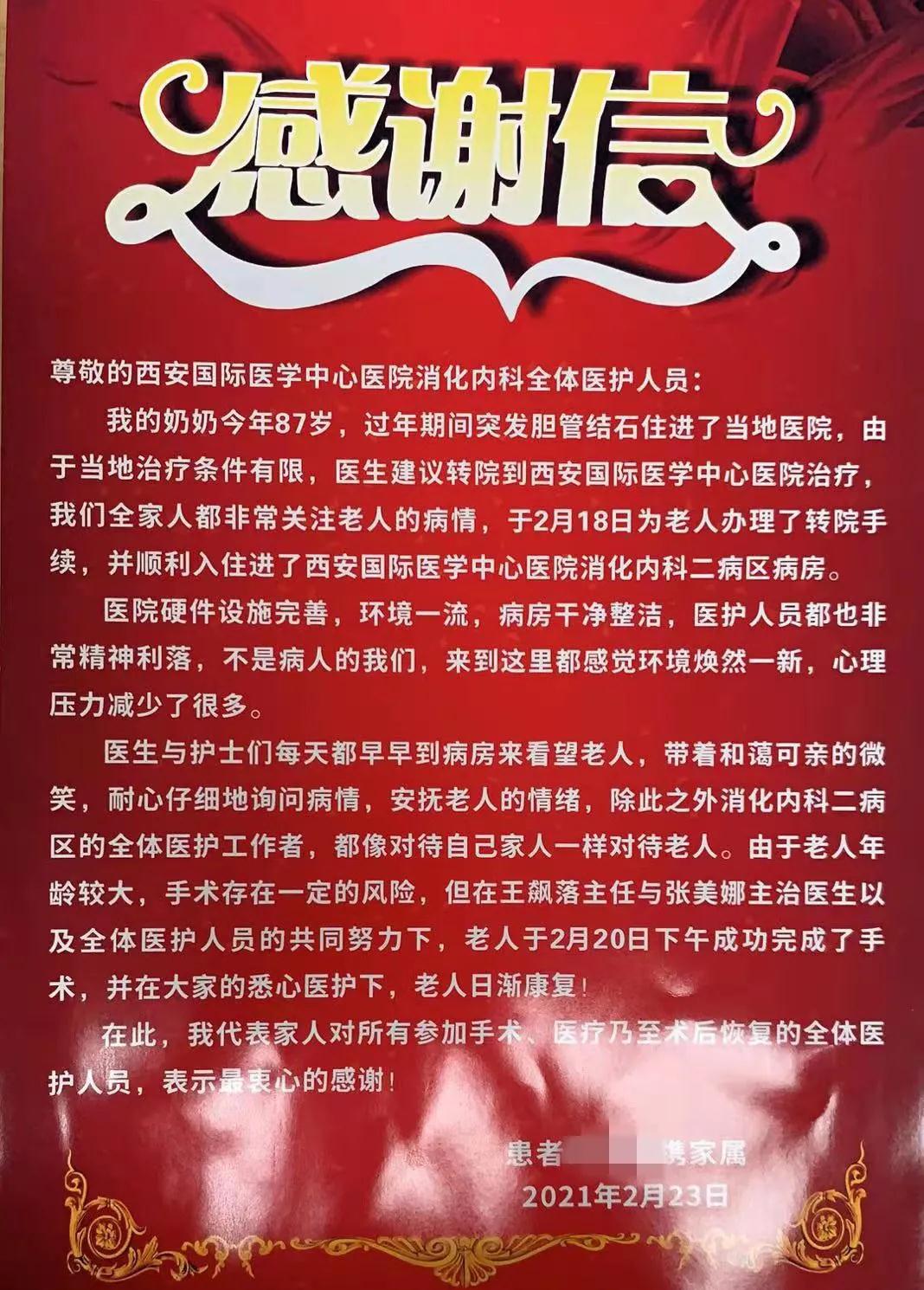過(guò)年期間,87歲的岳奶奶連續(xù)發(fā)燒、肚子疼。家人送往外院檢查后,診斷為膽總管結(jié)石,但醫(yī)療條件有限,無(wú)法為岳奶奶治療。2月18日,岳奶奶的兒女趕緊將母親送到西安國(guó)際醫(yī)學(xué)中心醫(yī)院就診。經(jīng)核磁檢查,考慮膽總管結(jié)石,收入消化內(nèi)科二病區(qū)進(jìn)一步治療。