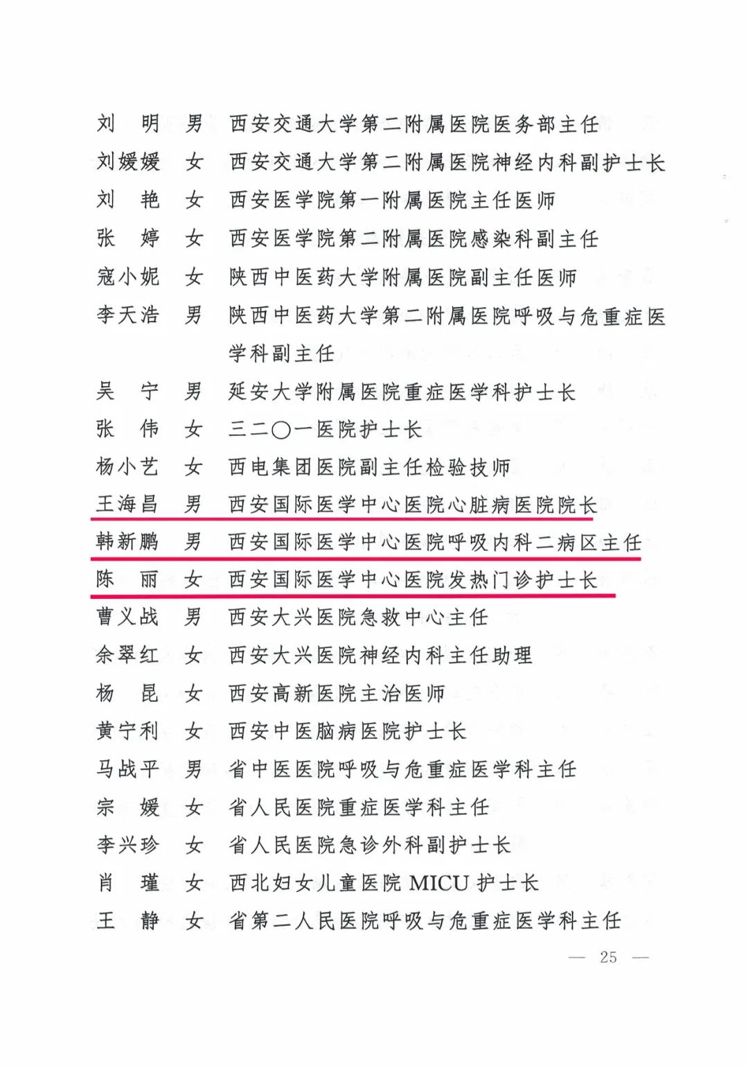 近日,中共陜西省委、陜西省人民政府印發(fā)《關(guān)于表彰全省抗擊新冠肺炎疫情先進(jìn)個人和先進(jìn)集體的決定》。西安國際醫(yī)學(xué)中心醫(yī)院援鄂醫(yī)療隊(duì)榮獲陜西省抗擊新冠肺炎疫情先進(jìn)集體;心臟病醫(yī)院院長王海昌、胸科醫(yī)院呼吸內(nèi)科二病區(qū)主任韓新鵬、發(fā)熱門診護(hù)士長陳麗榮獲陜西省抗擊新冠肺炎疫情先進(jìn)個人。