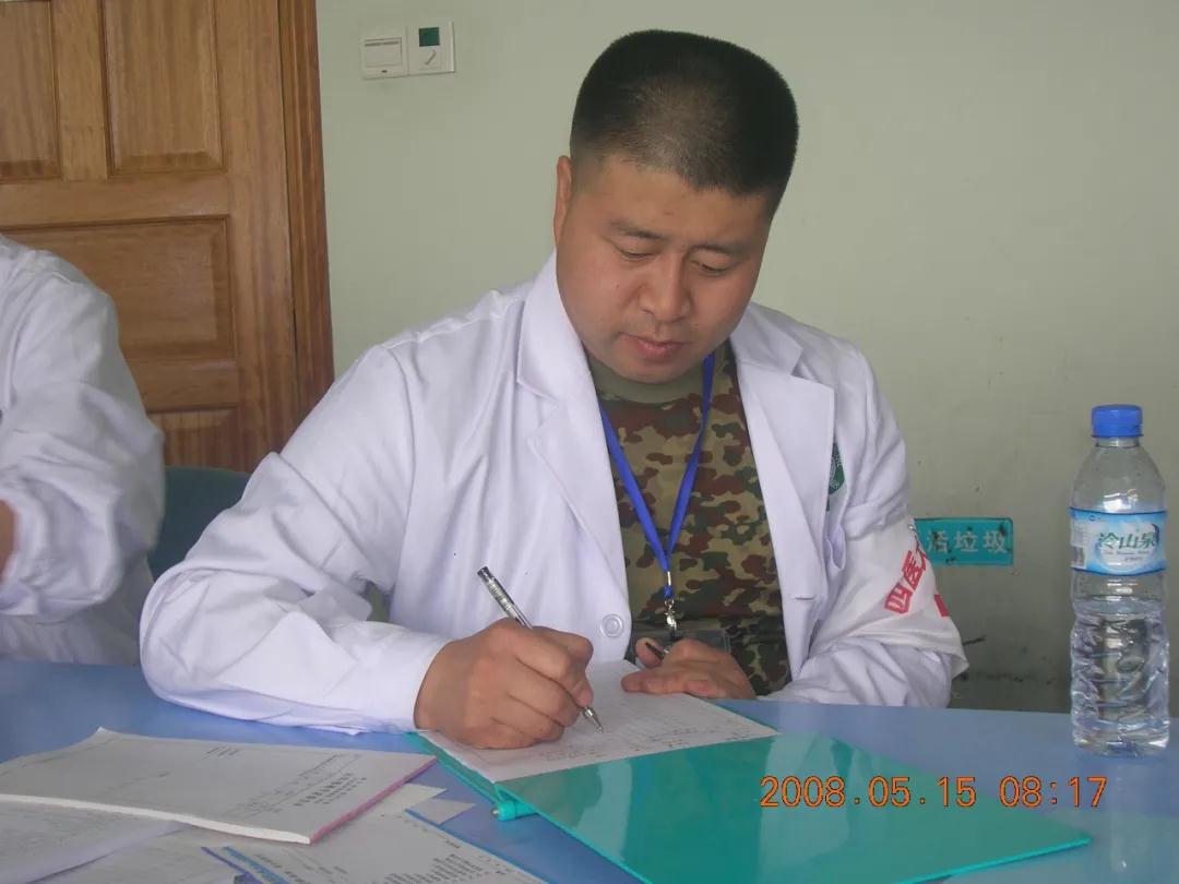 14時28分,山河破碎,天崩地裂,西安有強烈震感。李占亭撥開向室外沖的人潮,逆行進(jìn)入透析室,在天旋地轉(zhuǎn)中幫助尚在透析的患者下機。安置好患者,他才想起在唐都醫(yī)院家屬院的妻子和不滿2歲的幼女?!叭粲袘?zhàn),召必至”,當(dāng)天晚上,李占亭響應(yīng)號召,收拾行囊準(zhǔn)備出發(fā)。急救包、迷彩服、膠鞋、手電筒、巧克力、壓縮餅干、礦泉水、紙巾是他的裝備。沒有人知道他將面臨怎樣的危險與挑戰(zhàn)。