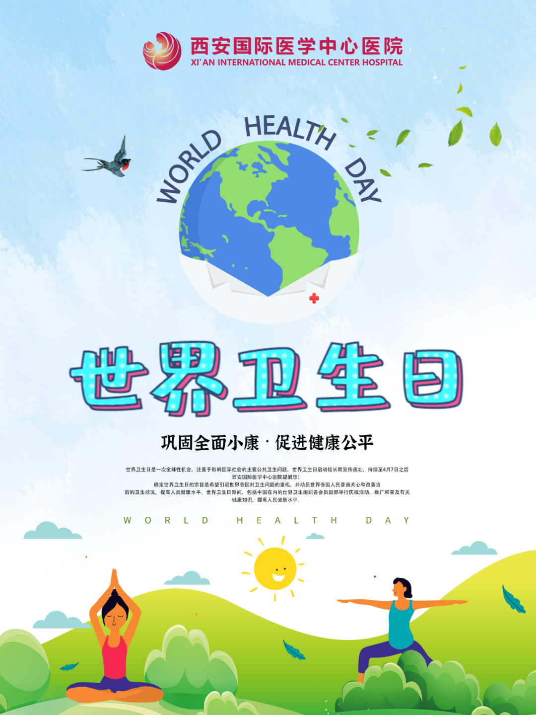 4月7日是世界衛(wèi)生日,是第72個(gè)世界衛(wèi)生日。今年世界衛(wèi)生日的主題是:建設(shè)一個(gè)更公平、更健康的世界。國家衛(wèi)生健康委將中國宣傳主題定為“鞏固全面小康,促進(jìn)健康公平”。