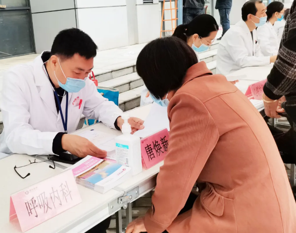 義診現(xiàn)場,各科醫(yī)護人員與前來咨詢的群眾充分溝通,免費為大家測血壓、血糖,查看檢查報告并耐心地講解和指導(dǎo),并給出治療建議。