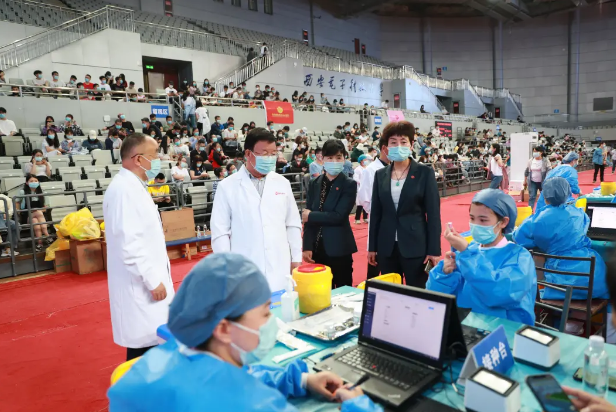 8日上午,西安國際醫(yī)學中心醫(yī)院總經(jīng)理王志峰、副院長楊峰、院長助理劉延彤等領(lǐng)導來到西安電子科技大學指導檢查新冠疫苗接種工作。醫(yī)院領(lǐng)導先后查看了接種區(qū)、留觀區(qū)等區(qū)域的管理及人員配備情況,督促工作人員加強統(tǒng)籌協(xié)調(diào),做好接種引導,要按照流程要求確保接種工作的安全有序開展。