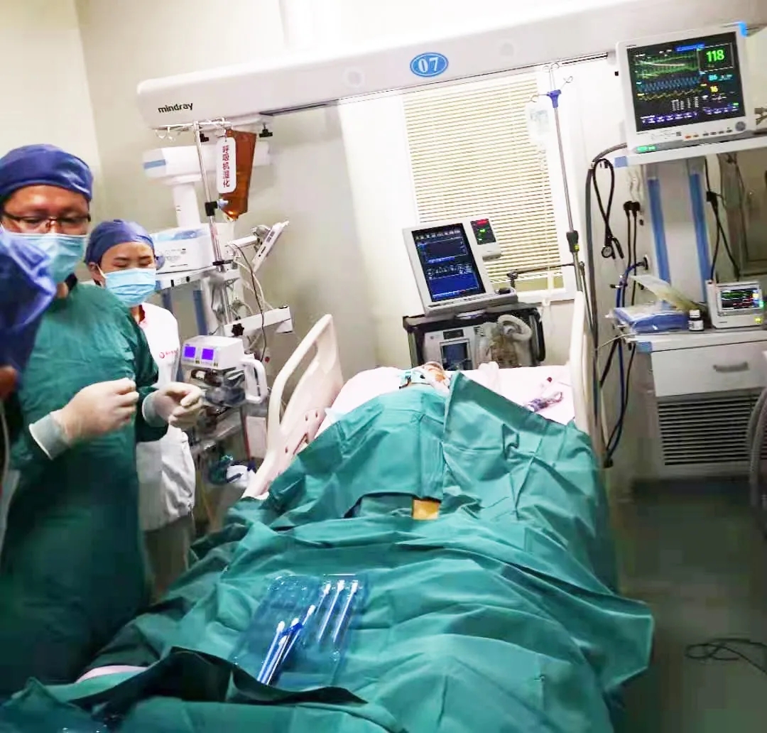 時間就是生命,治療設(shè)備第一時間到位后,胸科醫(yī)院吳昌歸院長、呼吸內(nèi)科重癥監(jiān)護室陳麗展主任、心外科程亮主任、程維平醫(yī)生等人立刻開始緊張的搶救工作。醫(yī)護人員一邊進行動靜脈置管并連接VV-ECMO的管路,一邊進行抗感染、輸血、維持生命體征,吸痰等營養(yǎng)支持治療。直到入院次日下午3點左右,患者病情趨于穩(wěn)定,搶救才告一段落。在醫(yī)護人員的精心治療下,患者病情逐漸好轉(zhuǎn),13天后成功脫離體外膜肺、停用VV-ECMO,16天后拔除氣管插管,能夠清楚的和人溝通交流,恢復(fù)情況讓醫(yī)護興奮,更讓家屬激動不已。
