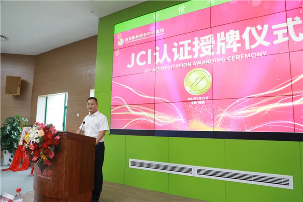 授牌儀式上,西安國際醫(yī)學(xué)投資股份有限公司總裁劉瑞軒、聯(lián)合委員會國際部總裁兼首席執(zhí)行官PaulaWilson ,聯(lián)合委員會國際部中國區(qū)主任、JCI評審(北京)有限公司副總經(jīng)理任暉,聯(lián)合委員會國際部JCI認(rèn)證組組長孔雅雀,華潤JCI研究院執(zhí)行院長酈忠分別致辭。