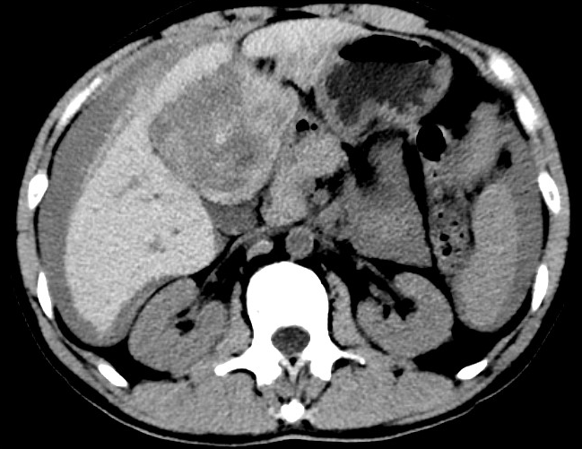 放下電話的白葦急赴消內(nèi)三搶救室會(huì)診,經(jīng)仔細(xì)查體、對(duì)患者腹部CT進(jìn)行詳細(xì)閱片、綜合評(píng)估患者后,考慮患者是肝占位破裂出血?;颊卟∏槭志o急、一刻也不容耽誤,需立刻急診行肝動(dòng)脈造影 栓塞術(shù)進(jìn)行止血治療,在與患者家屬溝通后,立即通知消化介入室準(zhǔn)備急診手術(shù)。