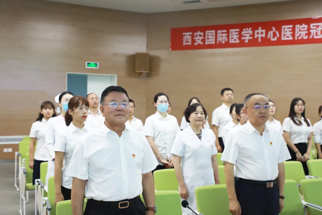 7月1日上午8時(shí),慶祝中國共產(chǎn)黨成立100周年大會(huì)在北京天安門廣場隆重舉行。中共中央總書記、國家主席、中央軍委主席習(xí)近平發(fā)表重要講話。西安國際醫(yī)學(xué)中心醫(yī)院組織廣大黨員干部和群眾員工,通過集中觀看和個(gè)人自學(xué)的方式,收聽收看大會(huì)直播,認(rèn)真學(xué)習(xí)習(xí)近平總書記重要講話。