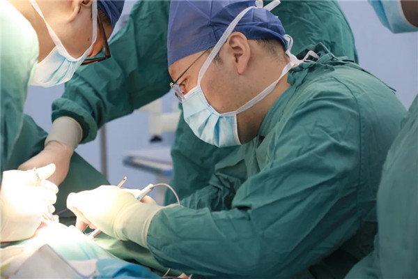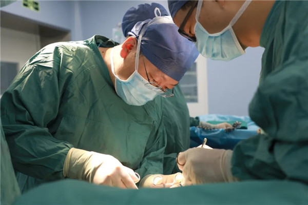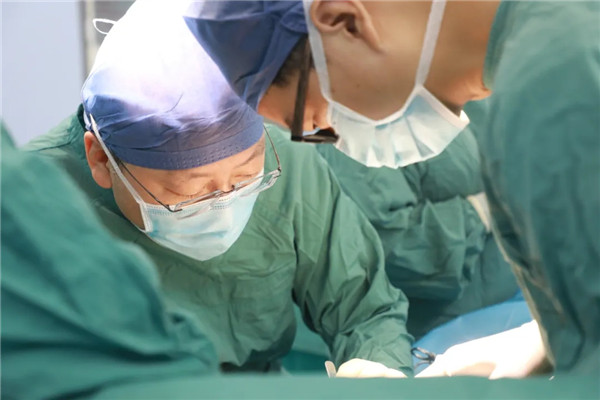 做好了充分準(zhǔn)備與預(yù)案,手術(shù)臺(tái)前的劉曉敏鎮(zhèn)定專(zhuān)注,在分離切斷王金花的甲狀腺懸韌帶后,他抽絲剝繭,一根根處理甲狀腺上極血管,繼而結(jié)扎切斷甲狀腺中、下的靜脈、動(dòng)脈,在由峽部切斷處起始分離甲狀腺背面時(shí),劉曉敏仔細(xì)辨認(rèn)喉返神經(jīng)和甲狀旁腺,確保不傷分毫。一般情況下,手術(shù)至此可以順利結(jié)束??赏踅鸹ㄊ俏焕淆g患者,由于氣管軟化,加上腫塊長(zhǎng)久壓迫,氣管就像失去回彈力的彈簧,從醫(yī)學(xué)角度看,患者已可以治愈,短期也無(wú)生命大礙,可彈不起來(lái)的“彈簧”還會(huì)重新聚攏在一起,讓老太太喘不上氣。一次手術(shù)能解決的問(wèn)題,絕不讓患者再受二茬罪,劉曉敏又對(duì)王金花實(shí)施氣管懸吊術(shù),把“癱瘓”了的氣管朝兩邊拉起,給氣管留出足夠的空間出氣。