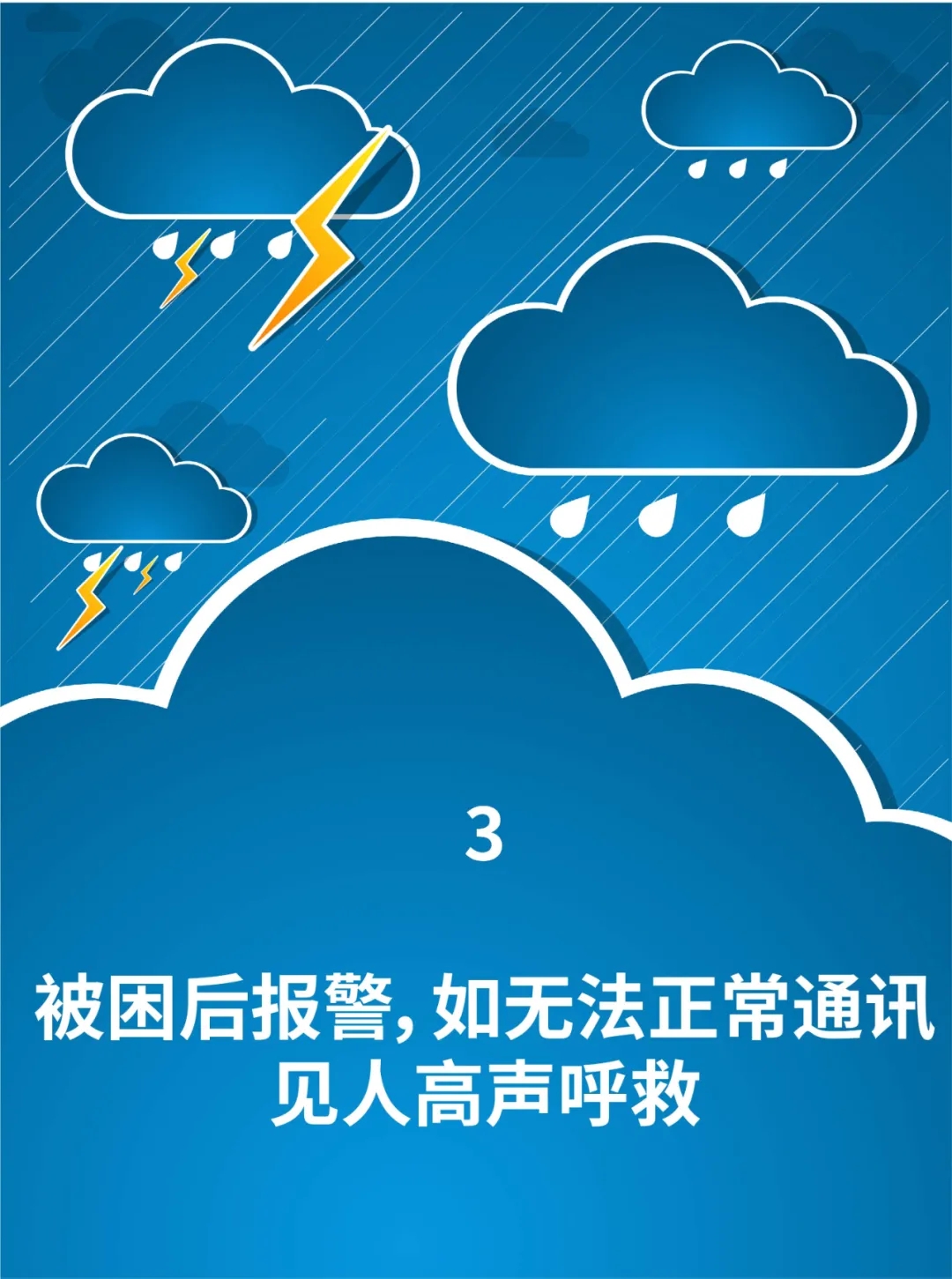 如果自己被困,可立刻向警方匯報(bào)自己所處位置、有多少人、周圍水情、緊急通訊方式等,然后停止使用手機(jī),等待救援。如手機(jī)沒(méi)電,與外界失去聯(lián)系,見(jiàn)到人要高聲呼救,敲擊身邊的物體,利用一切能發(fā)光、鮮艷的物體吸引救援人員注意。