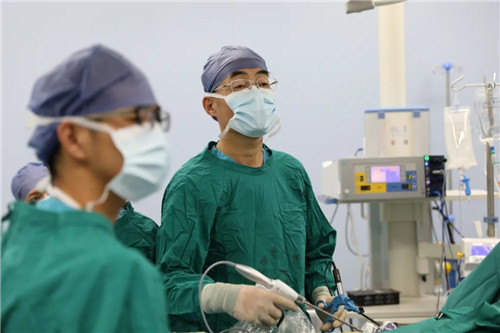 在高難度泌尿外科手術(shù)中,楊增悅將目光投向了超精準(zhǔn)微創(chuàng)外科手術(shù)領(lǐng)域。2020年7月15日,楊增悅率領(lǐng)團(tuán)隊(duì)采用第四代達(dá)芬奇機(jī)器人成功為一名75歲患者行“機(jī)器人輔助根治性右腎、右腎上腺部分切除 左腎上腺切除 腎門淋巴結(jié)清掃術(shù)”。手術(shù)涉及三個(gè)器官:右腎切除、右側(cè)腎上腺轉(zhuǎn)移瘤切除(保留部分正常腎上腺組織)、左腎上腺切除,并且清掃了腎門淋巴結(jié),為患者解除了病痛。截至目前,該科室采用第四代達(dá)芬奇機(jī)器人已完成近百例高難度手術(shù)。