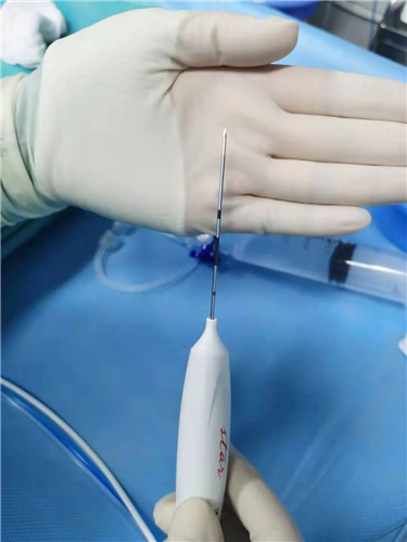 周曉東主任說,傳統(tǒng)手術(shù)是通過頸部正面進入、走的是一條“康莊大道”,雖然路好走了,但對頸前區(qū)組織的破壞也大了;而以上提到的消融術(shù)就是現(xiàn)在治療甲狀腺結(jié)節(jié)的另一種方法。即在超聲的全程引導(dǎo)下,將一根1.4mm粗的電極針插入結(jié)節(jié)內(nèi)部,通過發(fā)射高頻電流,微波,甚至激光使病灶溫度升高,發(fā)生凝固壞死,然后人體會慢慢將這些壞死的組織吸收掉,結(jié)節(jié)(腫瘤)因此“消失”。