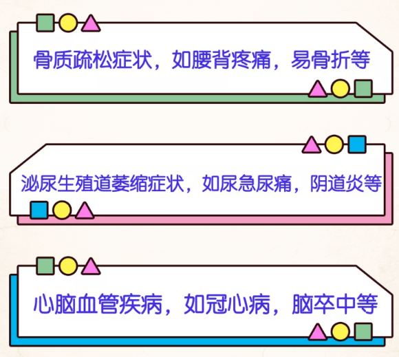 實際上,除了近期危害,因缺乏雌激素會帶來遠期危害,嚴重影響女性的健康和生活質量,比如: