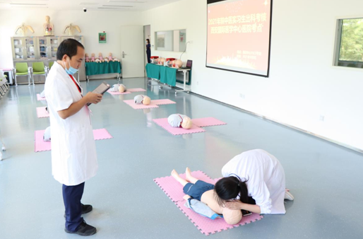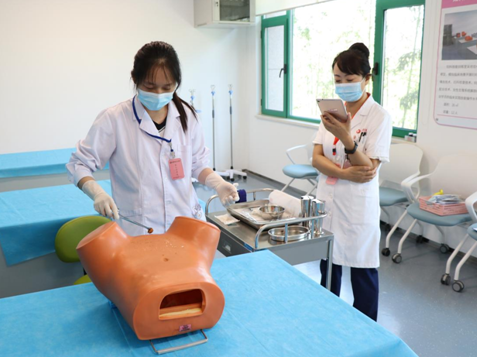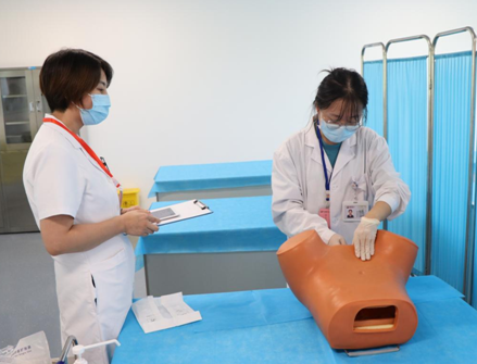 考核現(xiàn)場采用OSCE考站系統(tǒng),考生進入考場后確定考核項目,在模擬人上進行具體操作,考官根據(jù)學員操作與現(xiàn)場作答情況進行評分,整個考場井然有序。此次考核不僅檢驗了輪轉實習學員的學習效果,也達到了以考促學、以考促教的效果,促進臨床帶教水平和質(zhì)量不斷提升。