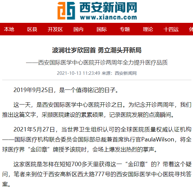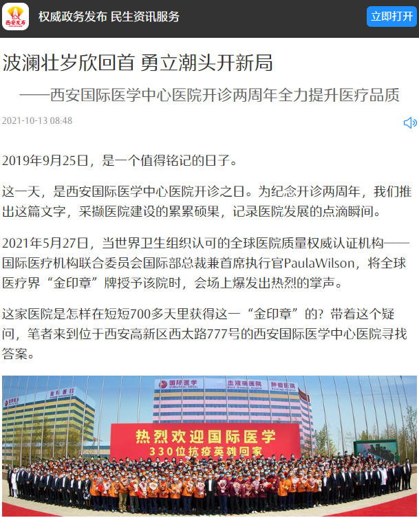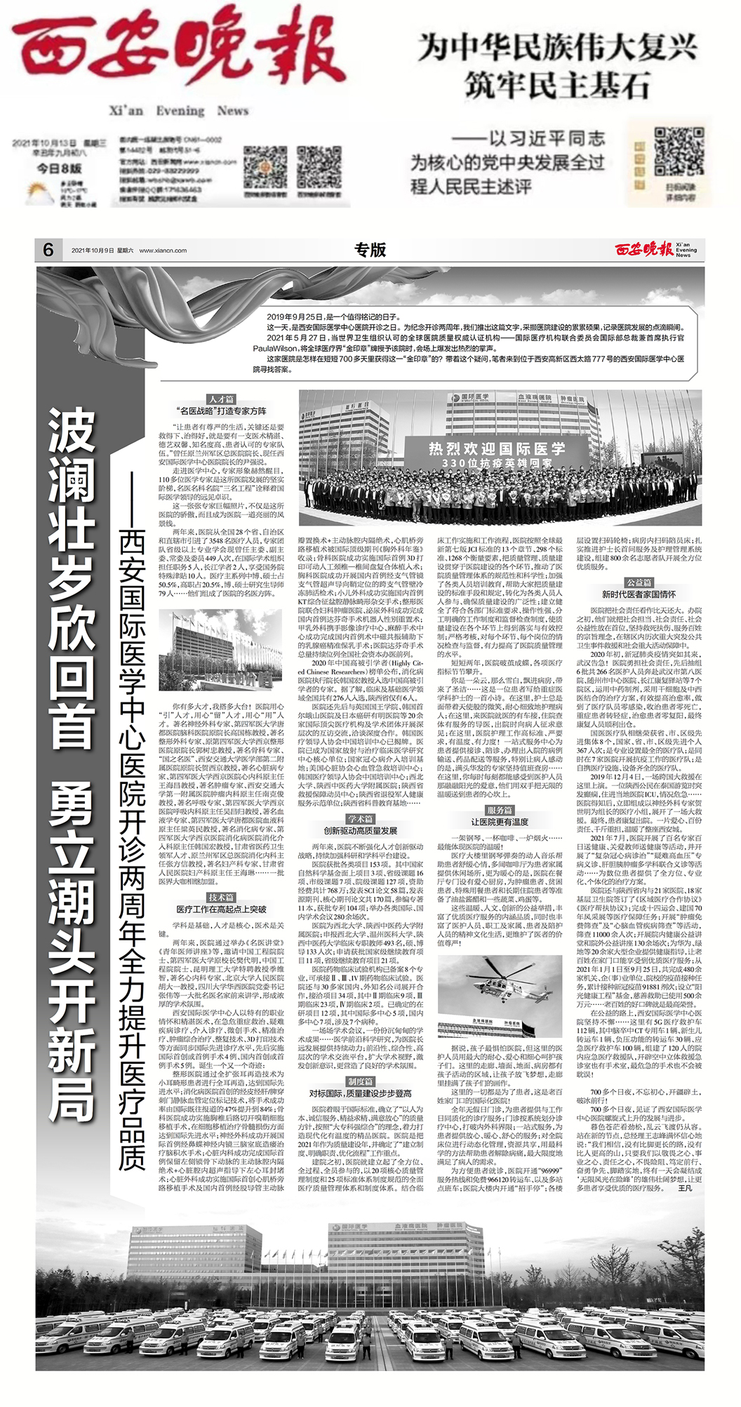 編者按:今日,《西安晚報》A8版用整版刊登了《波瀾壯歲欣回首 勇立潮頭開新局——西安國際醫(yī)學(xué)中心醫(yī)院提升醫(yī)療品質(zhì)紀(jì)實》,以圖文并茂的形式記錄了醫(yī)院發(fā)展的點滴瞬間,展現(xiàn)了西安國際醫(yī)學(xué)中心人一路向前的奮斗豪情。