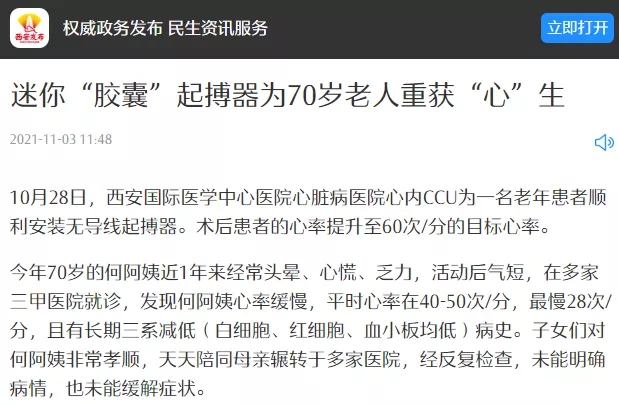 【老年健康?醫(yī)視界】迷你“膠囊”起搏器為70歲老人重獲“心”生