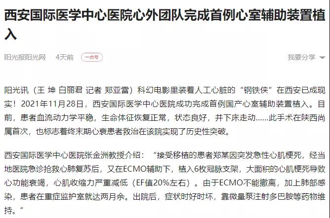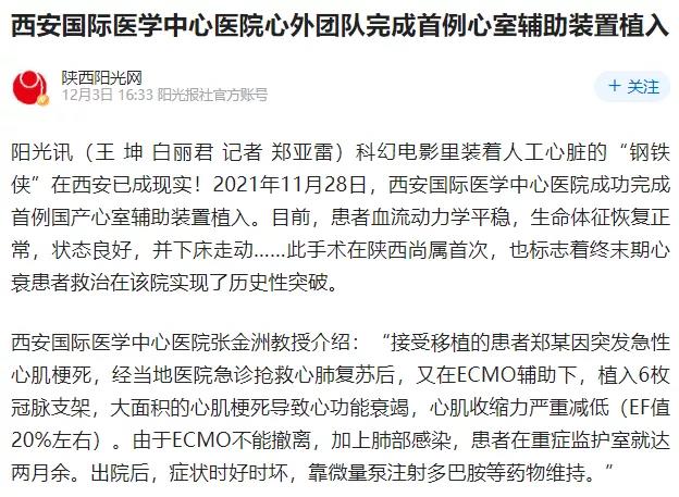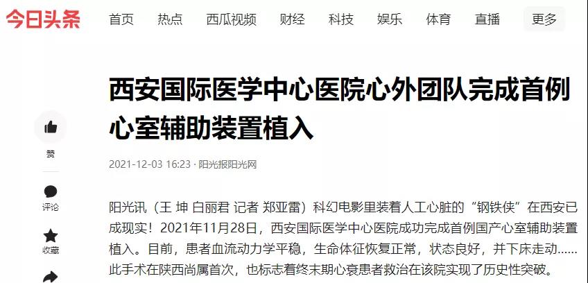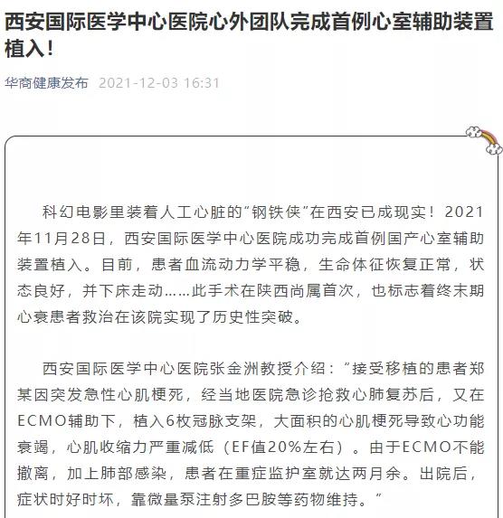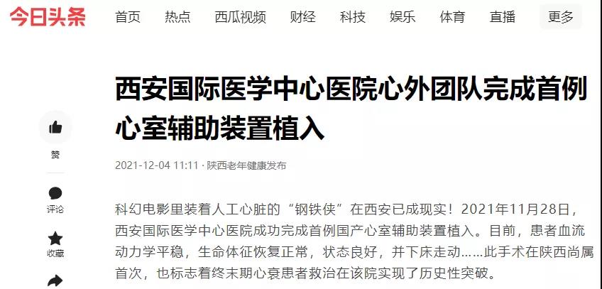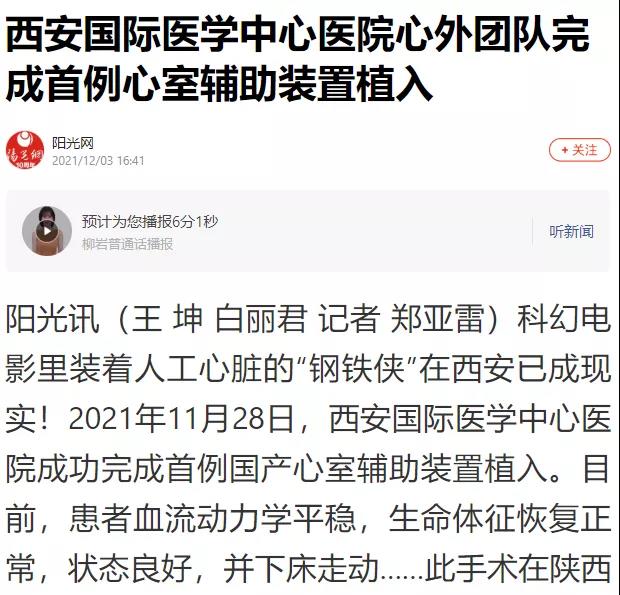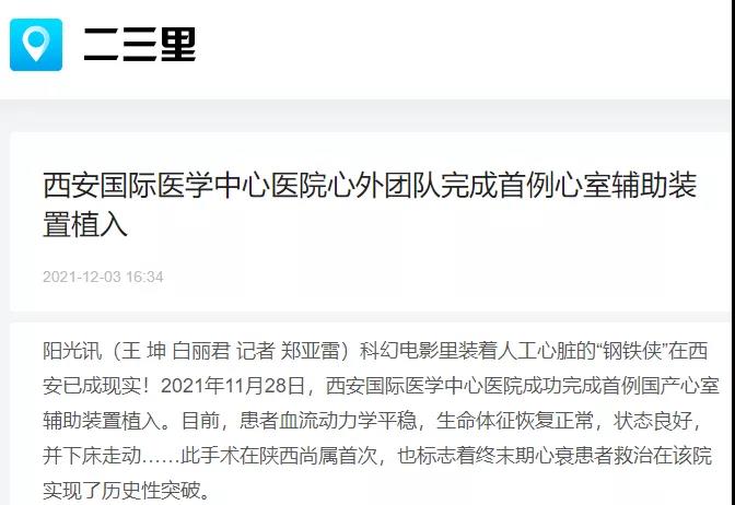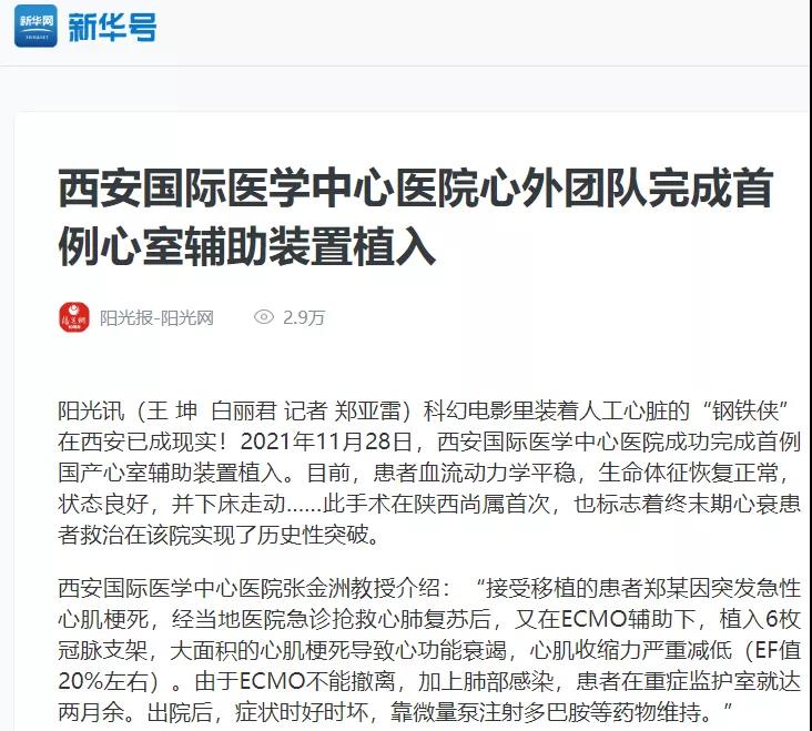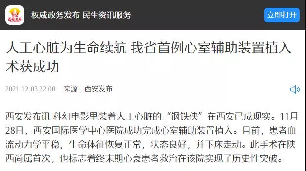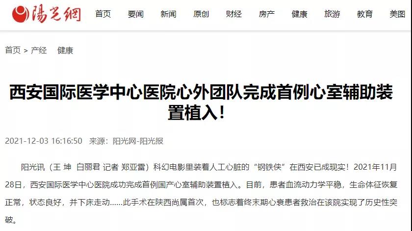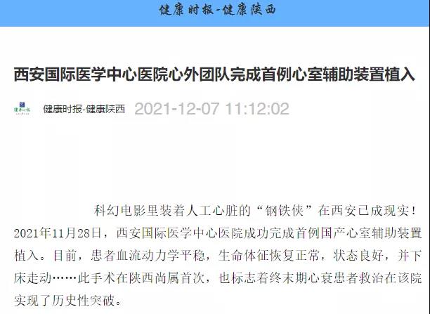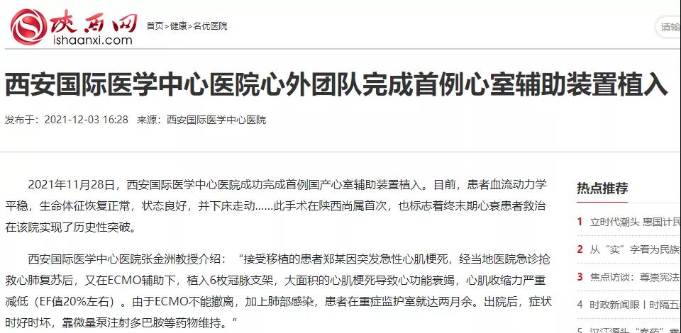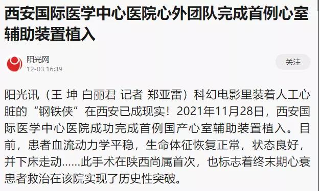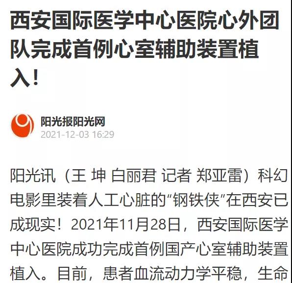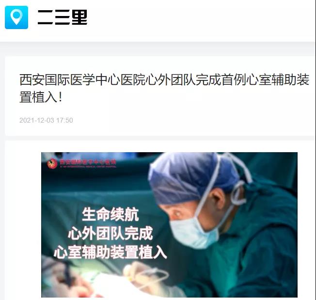 西安國際醫(yī)學(xué)中心醫(yī)院心外團(tuán)隊完成首例心室輔助裝置植入!