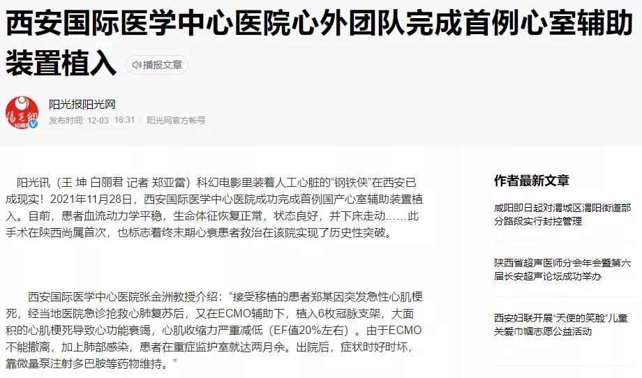 西安國際醫(yī)學(xué)中心醫(yī)院心外團(tuán)隊完成首例心室輔助裝置植入