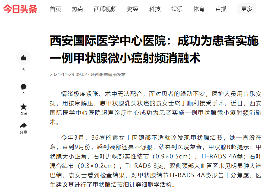 西安國際醫(yī)學(xué)中心醫(yī)院:成功為患者實施一例甲狀腺微小癌射頻消融術(shù)