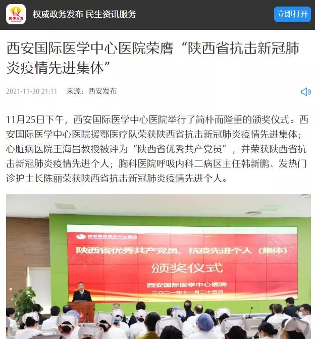 西安國際醫(yī)學(xué)中心醫(yī)院榮膺“陜西省抗擊新冠肺炎疫情先進(jìn)集體”