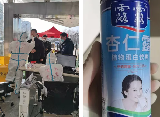 在執(zhí)行高新區(qū)采樣任務(wù)的過程中,讓我記憶猶新的是在12月19日,我同我的戰(zhàn)友,在出口加工廠b區(qū),奮戰(zhàn)中,忽然發(fā)現(xiàn)一個年輕的警察向我走來,我以為他是要進行核酸采樣,就讓他掃碼,但是他卻從懷里掏出一瓶露露,放到了桌子上,我明白他的意思以后連忙婉言拒絕,可是他燦然一笑,輕輕地說了聲“辛苦了”,放下就走了。這時,換班的同事也來了。當(dāng)我脫下防護服,拿起露露時,它居然是熱的!頓時,我淚崩了!這瓶露露還帶著年輕警察的體溫!這讓我十分感動!我不過是在履行著一個醫(yī)護工作者的職責(zé),做著自己本就應(yīng)該做的本職工作而已,卻受到了素不相識的人的關(guān)心、饋贈和敬重!我想,只有不畏艱險,全心全意地努力工作,認認真真地做好每一次篩查,為深愛著的古城西安新冠早日清零,發(fā)揮出我最大的能量和努力,以回饋社會各界對我們的殷切希望!