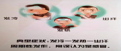 發(fā)作前幾天,每天或隔天可有程度不同發(fā)燒,同時(shí)伴疲勞、頭痛、腰背痛、肌肉酸痛、厭食、全身或腹部不適、輕度腹瀉和怕冷等前驅(qū)癥狀;多次發(fā)作后,可引起貧血和脾腫大。