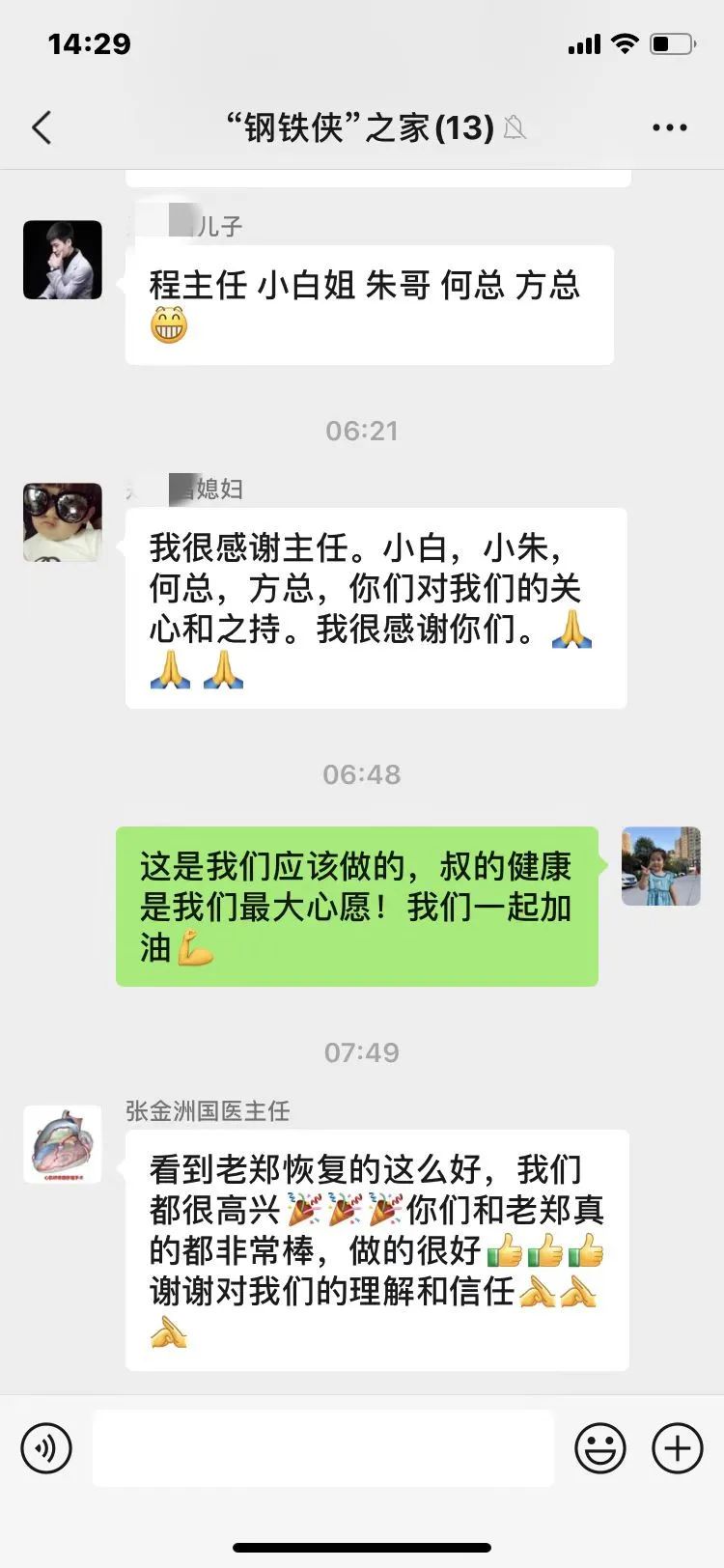 “他們專(zhuān)門(mén)為我建了一個(gè)‘鋼鐵俠之家’的微信群,我和張?jiān)洪L(zhǎng)還有科室的醫(yī)護(hù)人員都像家人一樣,我每天都會(huì)在群里發(fā)我的日常狀態(tài)、吃的藥量”,面色紅潤(rùn)的老鄭步履輕盈地走到駕駛座:“別說(shuō)開(kāi)車(chē)了,在這之前,我連路都走不了,現(xiàn)在我可以去接送孫子上下學(xué)?!?