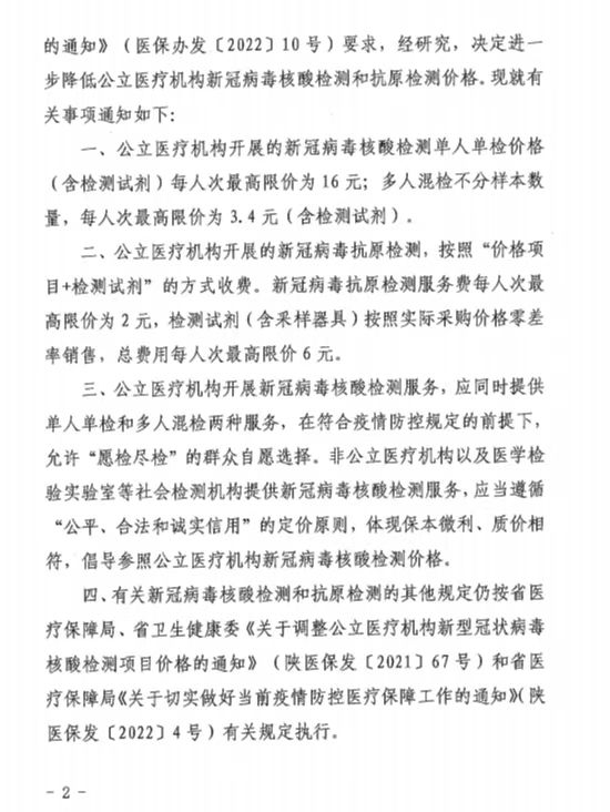 關于進一步降低公立醫(yī)療機構新冠病毒核酸檢測和抗原檢測價格的通知